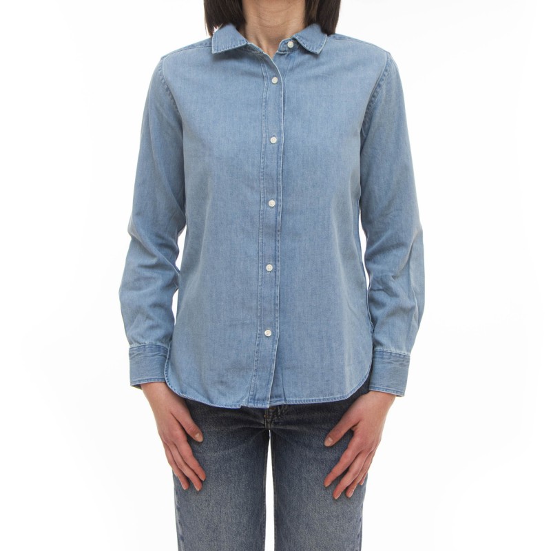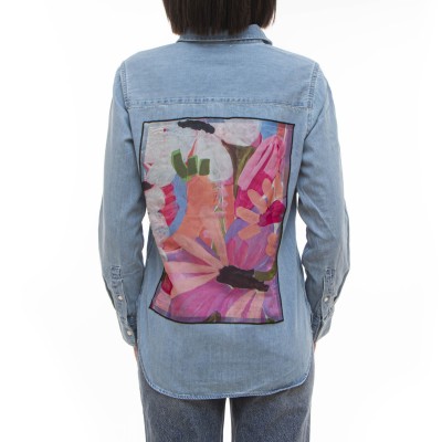 Damenhemd – Denim Flower Art Denim Patch Shirt