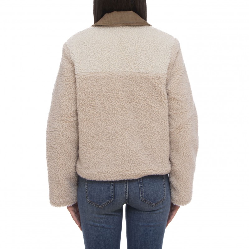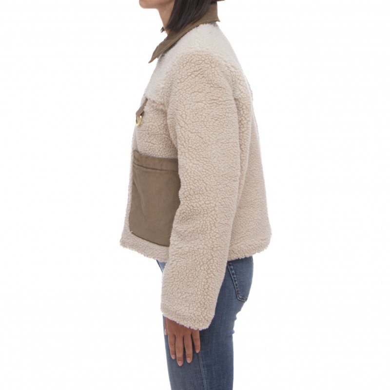 - Zwei aufgesetzte Samttaschen auf der Vorderseite, die mit einem Reißverschluss und verdeckten Knöpfen geschlossen werden.