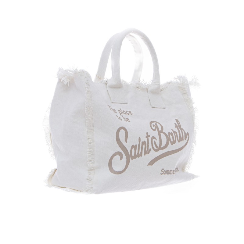 - Große Baumwoll-Canvas-Tasche mit Fransen.