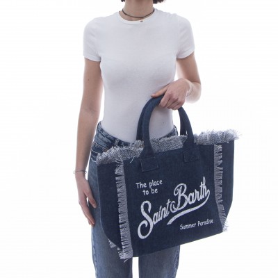 - Große Baumwoll-Canvas-Tasche mit Fransen.