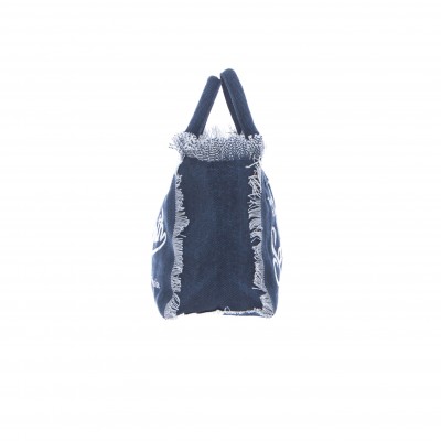 - Kleine Baumwoll-Canvas-Tasche mit Fransen.
