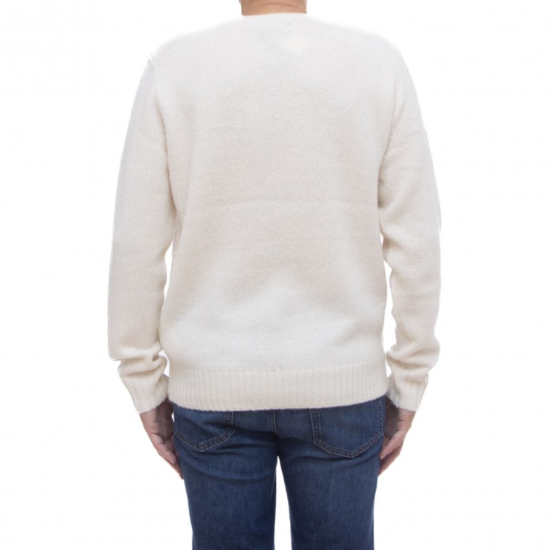 - Gerippter Kragen, Ärmelbündchen und Saum.