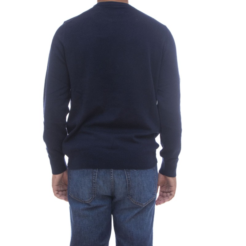 - Gerippter Kragen, Ärmelbündchen und Saum.