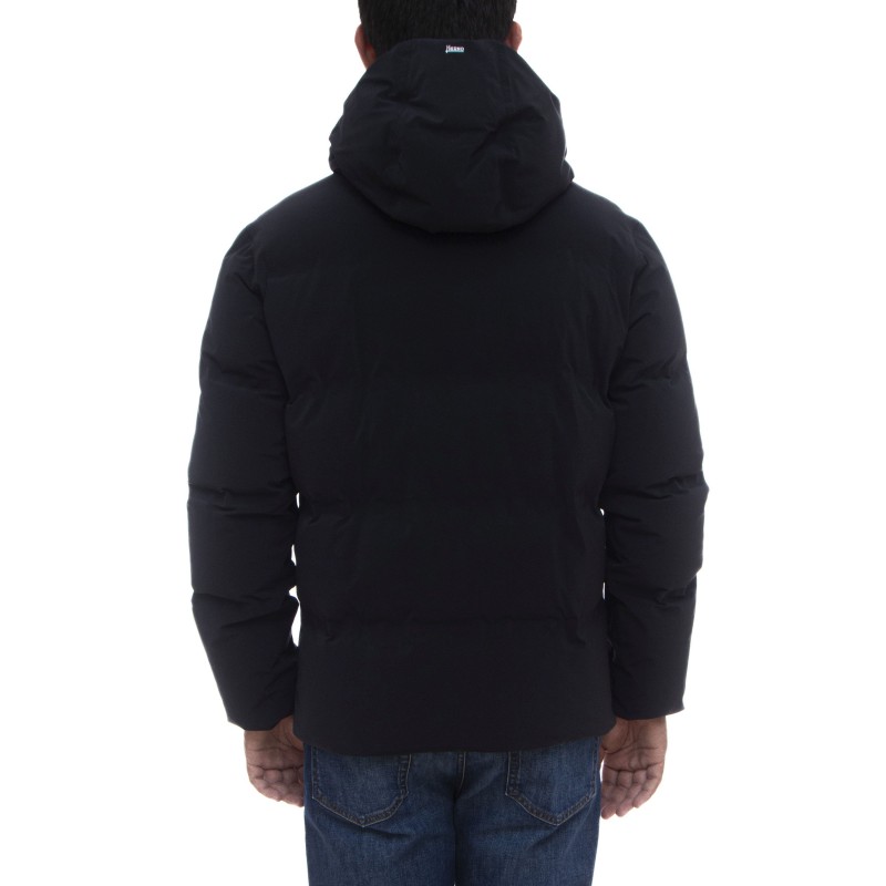 - Der Schriftzug Herno am Rand der Kapuze aufgedruckt.