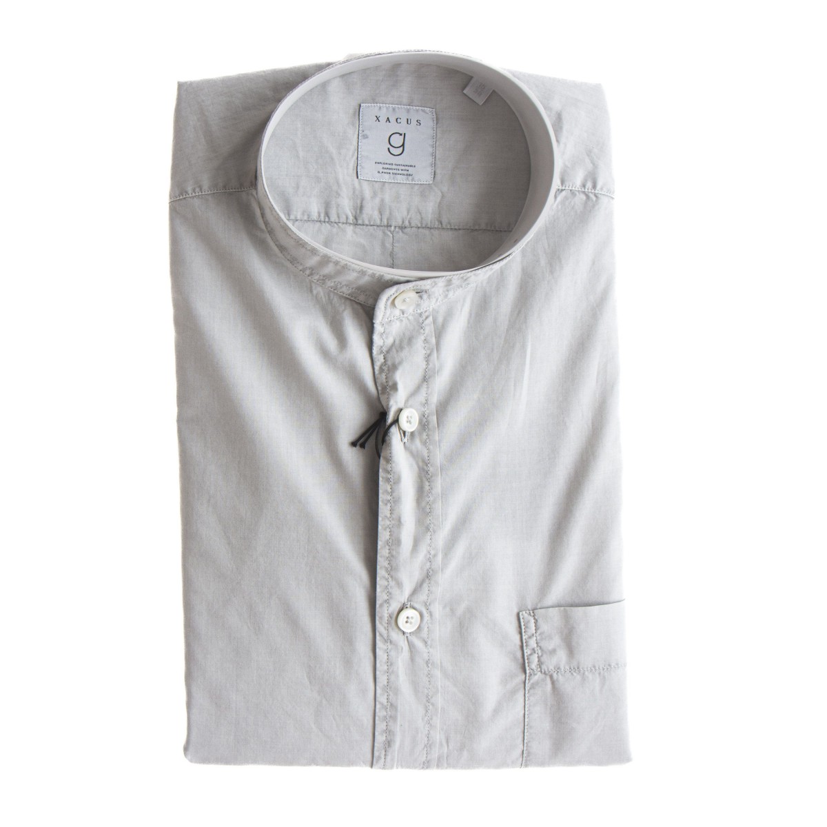 - Hemd mit g_pwdr Behandlung: innovatives System zur Behandlung und Färbung von Stoffen, das "G Upgraded Recycled Graphit" verwendet.