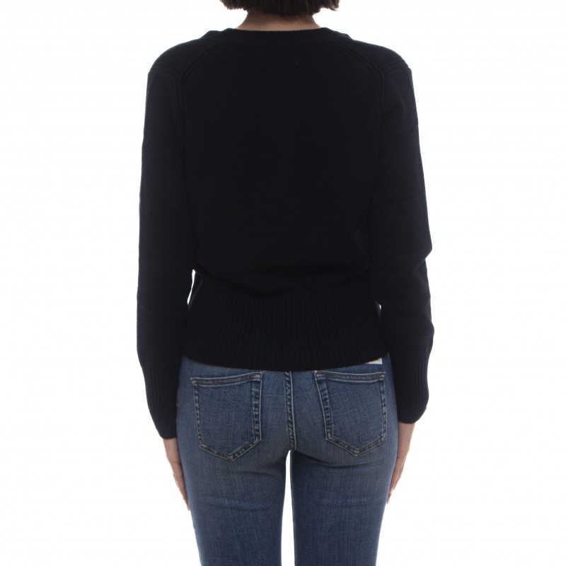 - Gerippter Ausschnitt, Ärmelbündchen und Saum.