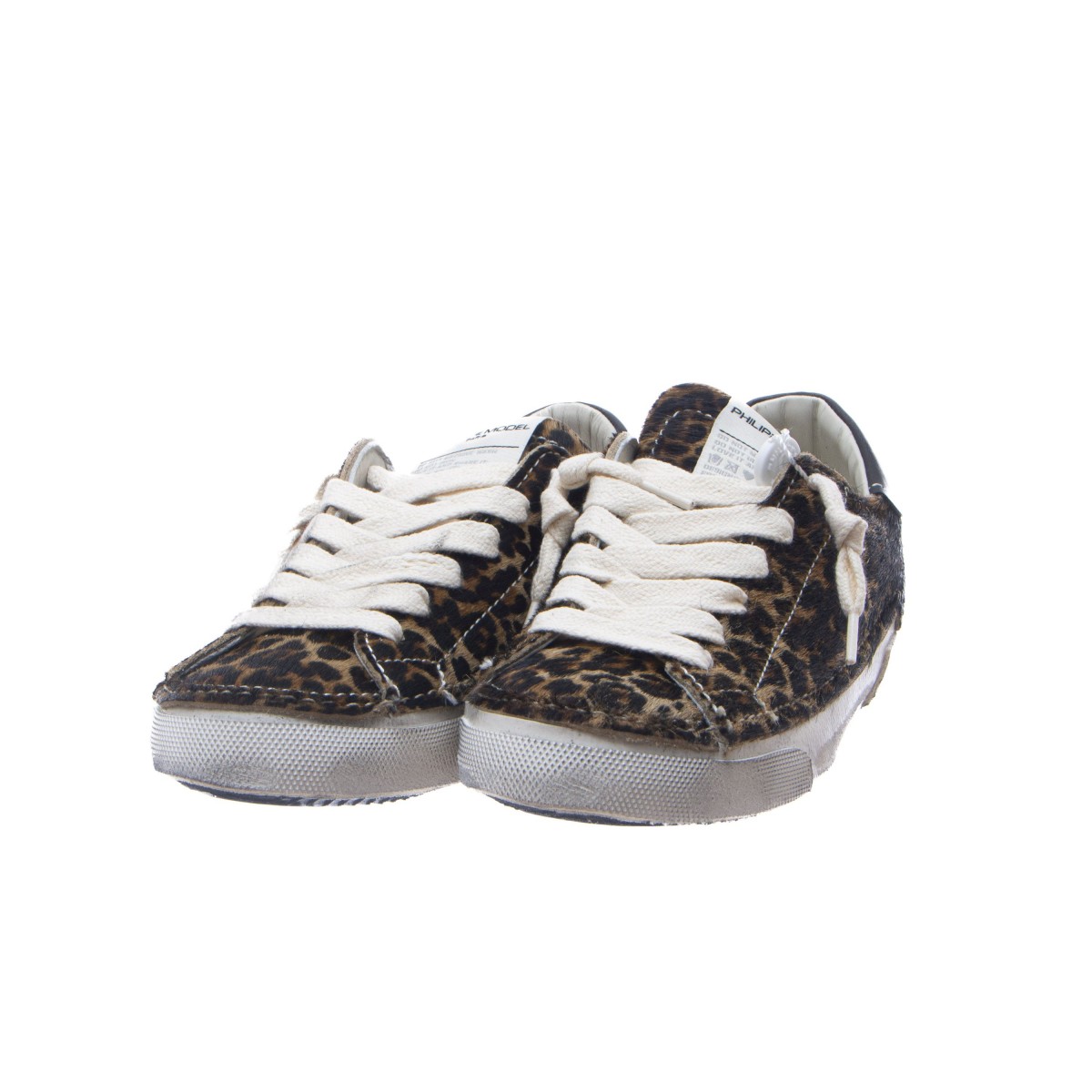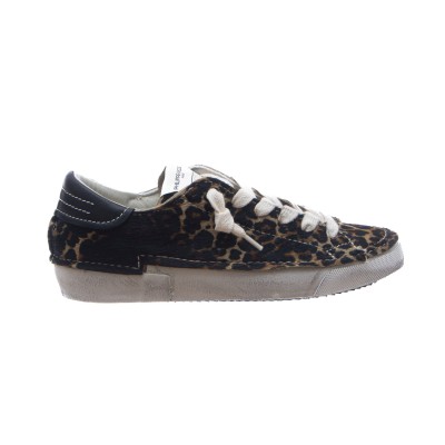 - Leather sneakers with fur effect.