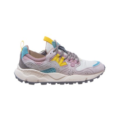 - Multicolor leather and suede inserts.