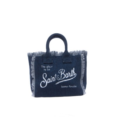 - Mini bag in cotton canvas with fringes.