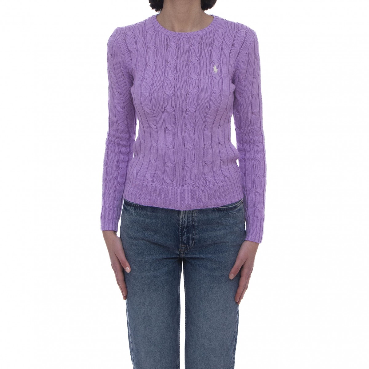 - Maglia girocollo con trecce.