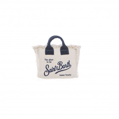 - Borsa mini in canvas di cotone con frange.