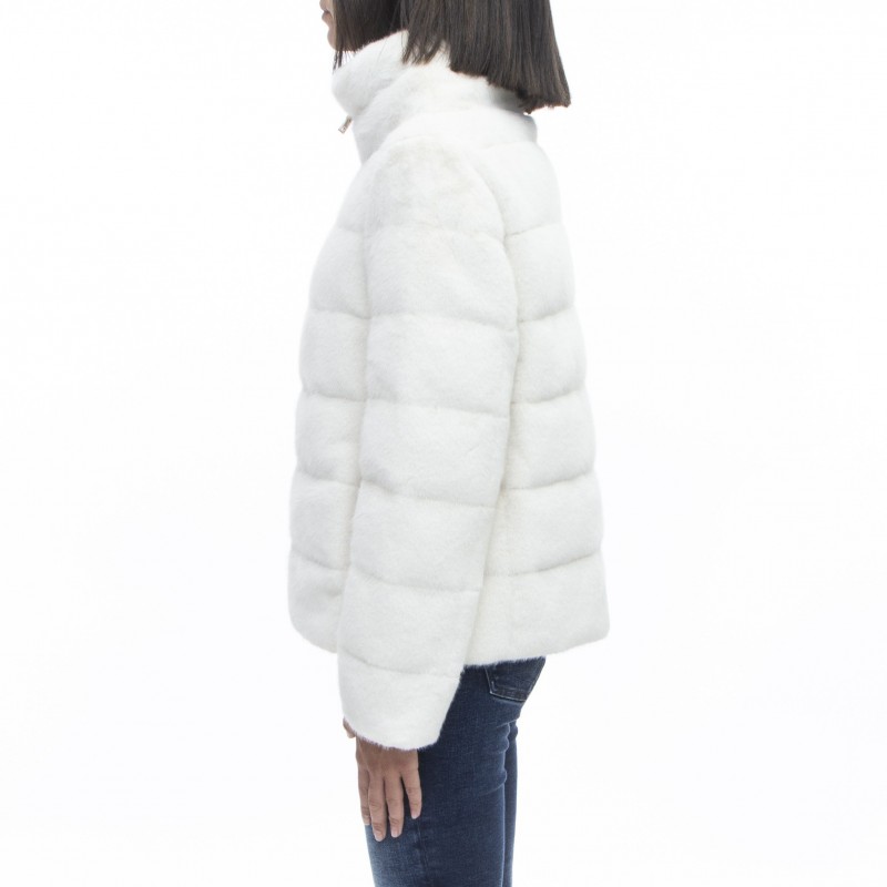 - 裏地付きのインテリアを備えた短いパッド入りフェイクファー。