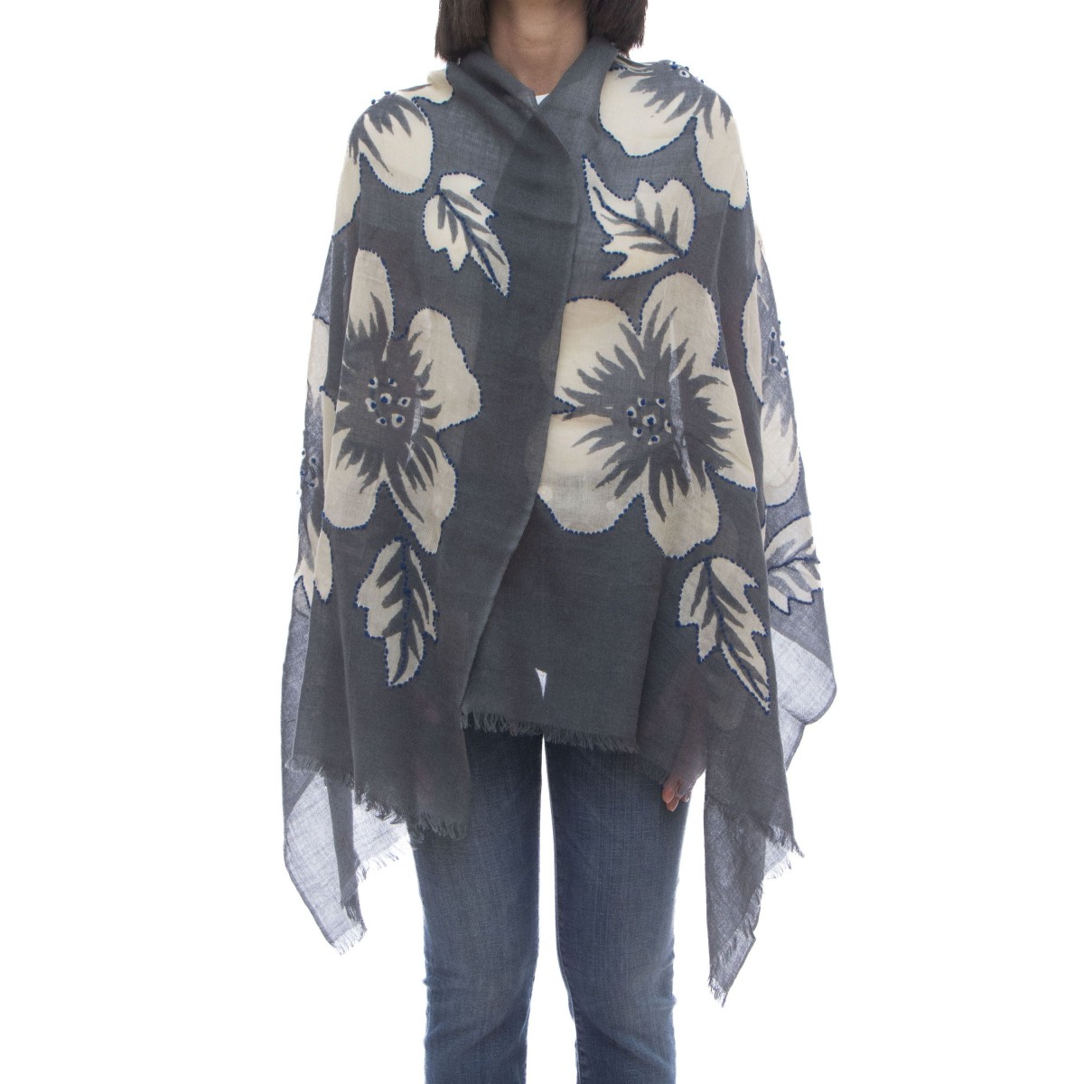 - 刺繍入りの柄入り冬用スカーフ。