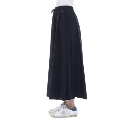 - 伸縮性のある長スカートで、不透明。