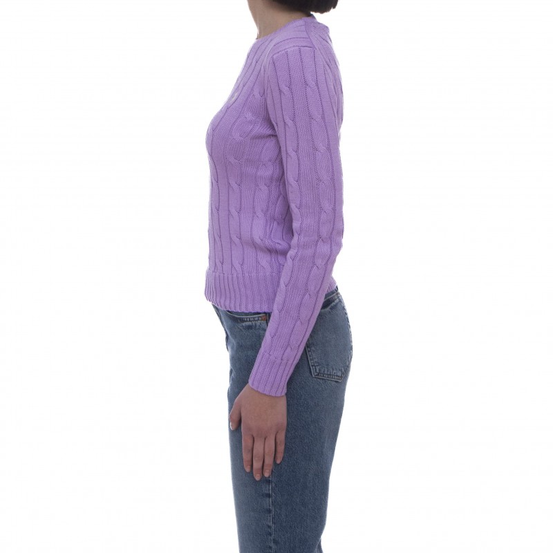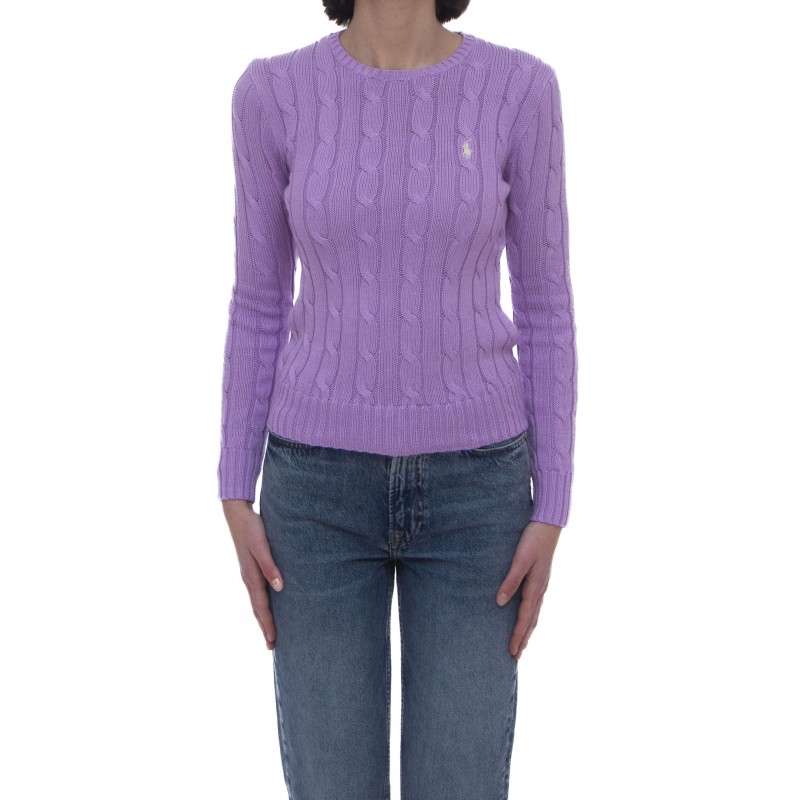 - ケーブル付きのクルーネックセーター。